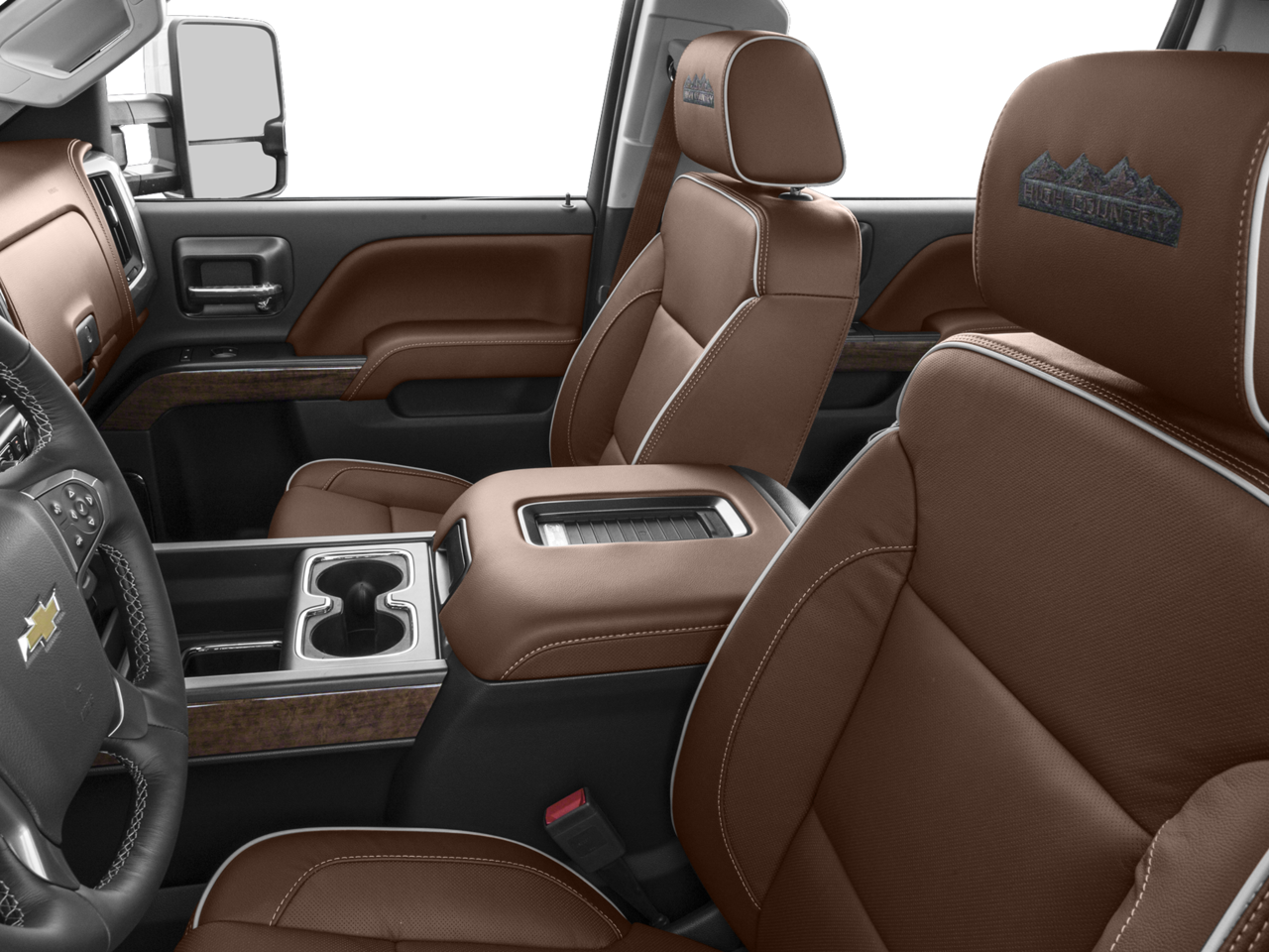 - High Country includes High Country brushed metal sill plate, (AN3) front full-feature leather-appointed bucket seats, (KB6) heated and vented seats, (B58) color-keyed carpeted floor mats, (D07) center floor console, (UQA) Bose sound system, (RQ9) 20" chromed aluminum wheels, (QFC) LT265/60R20E all-terrain, blackwall tires, (UD5) Front and Rear Park Assist, (VB5) body-color front bumper, (VT5) body-color rear bumper, unique chrome grille, (V76) Black recovery hooks and (CTD) cargo tie downs, dealer-installed