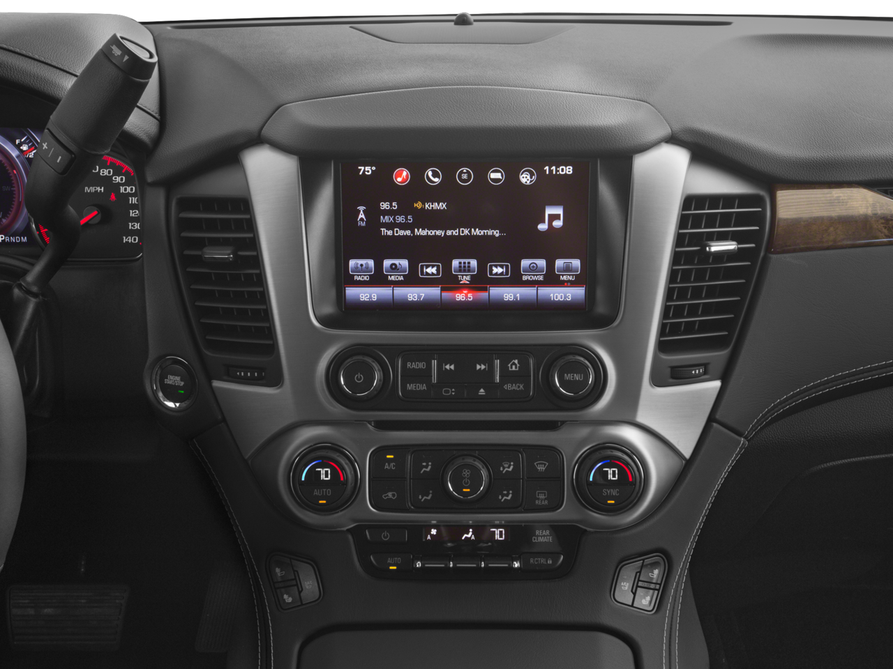 - Audio system, 8" Diagonal Color Touch Screen Navigation with GMC Infotainment System AM/FM/SiriusXM stereo with seek-and-scan and digital clock, includes Bluetooth streaming audio for music and select phones; voice-activated technology for radio and phone; and Shop. Featuring Apple CarPlay and Android Auto capability for compatible phone; 5 USB ports and 1 auxiliary jack