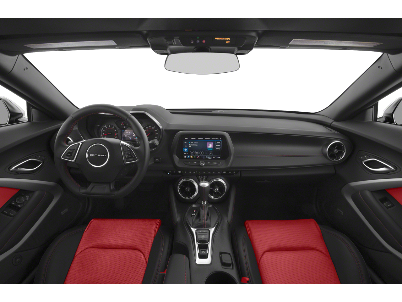 - Black interior with Ceramic White front seat inserts, door inserts and stitching on front seats, doors, steering wheel, shifter and center console