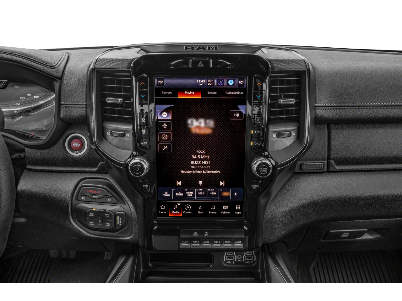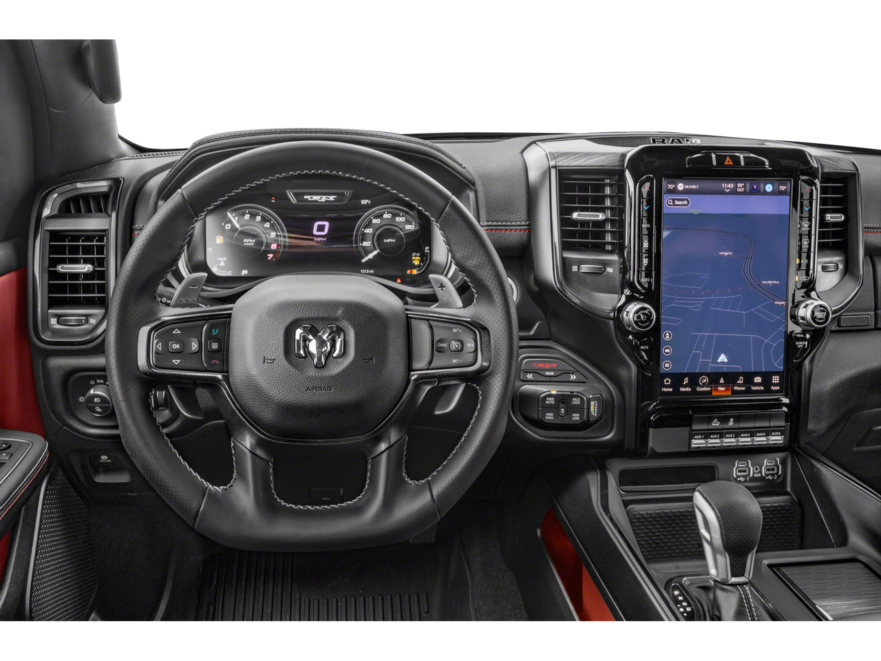 #2 Seat Foam Cushion, 2-Door Passive Entry, Front Door Locks, 4 Way Front Headrests, Accent Color Door Handles, Adaptive Cruise Control w/Stop & Go, Advanced Safety Group, Bed Utility Group, Blind Spot & Cross Path Detection, Bucket Seats, Center Console Parts Module, Digital Rearview Mirror, Dome Dual LED Reading Lamp, Driver Seat Memory, Driver/Passenger Wrapped Assist Handles, Dual-Pane Panoramic Sunroof, Exterior Mirrors w/Memory, Front Door Accent Lighting, Front Seat Back Map Pockets, Full Length Premium Upgraded Floor Console, harman/kardon 19 Speaker Premium Sound, Heads-Up Display, Heated Front Seats, Heated Second Row Seats, Heated Steering Wheel, IP LED Ambient Light Pipe, Lane Keep Assist, Leather Trimmed Bucket Seats, Leather/Carbon Flat-Bottom Steering Wheel, Leather/Suede Flat-Bottom Steering Wheel, LED CHMSL Lamp, Luxury Front Door Trim Panel, MOPAR 4 Adjustable Cargo Tie-Down Hooks, MOPAR Bright Pedal Kit, MOPAR Deployable Bed Step, MOPAR Off-Road Style Running Boards, MOPAR Rambar, MOPAR Spray In Bedliner, ParkSense Front/Rear Park Assist w/Stop, Pedestrian Emergency Braking, Pick-Up Box Lighting, Power 4-Way Driver Lumbar Adjust, Power 4-Way Passenger Lumbar Adjust, Power 8-Way Driver & Passenger Seats, Power Adjustable Pedals w/Memory, Premium Wrapped IP Bezel, Radio/Driver Seat/Mirrors/Pedals Memory, Rain Sensitive Windshield Wipers, Real Carbon Fiber Interior Accents, Rear 60/40 Folding Seat, Rear 60/40 Folding Split Recline Seat, Rear Door Accent Lighting, Rear Underseat Compartment Storage, Rear Window Defroster, Remote Tailgate Release, Sun Visors w/Illuminated Vanity Mirrors, Surround View Camera System, Tailgate Ajar Warning Lamp, Trailer Brake Control, TRX Carbon Fiber Package, TRX Level 2 Equipment Group, Universal Garage Door Opener, Ventilated Front Seats, Ventilated Rear Seats, Wireless Charging Pad.
